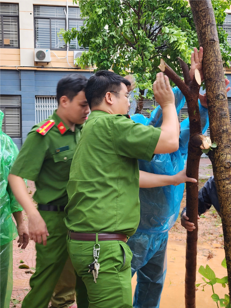 Đồng hành cùng Nhà trường để khắc phục các hậu quả do bão là các cán bộ chiến sĩ công an nhân dân cùng Đội dân quân tự vệ và nhân dân nơi địa bàn Nhà trường ở 2 khu. Tình cảm Quân - Dân chung tay để chỉnh trang cây cối, dựng lại cây đổ và cùng với các Thầy, cô giáo Nhà trường dọn dẹp vệ sinh 2 khu đã và sẽ mãi là những hình ảnh đẹp - Nhà trường xin ghi nhận và trân trọng cảm ơn sự sẻ chia - hỗ trợ và đồng hành kịp thời của các cấp, các ngành trong việc khắc phục hậu quả của cơn bão số 3 (Yagi).